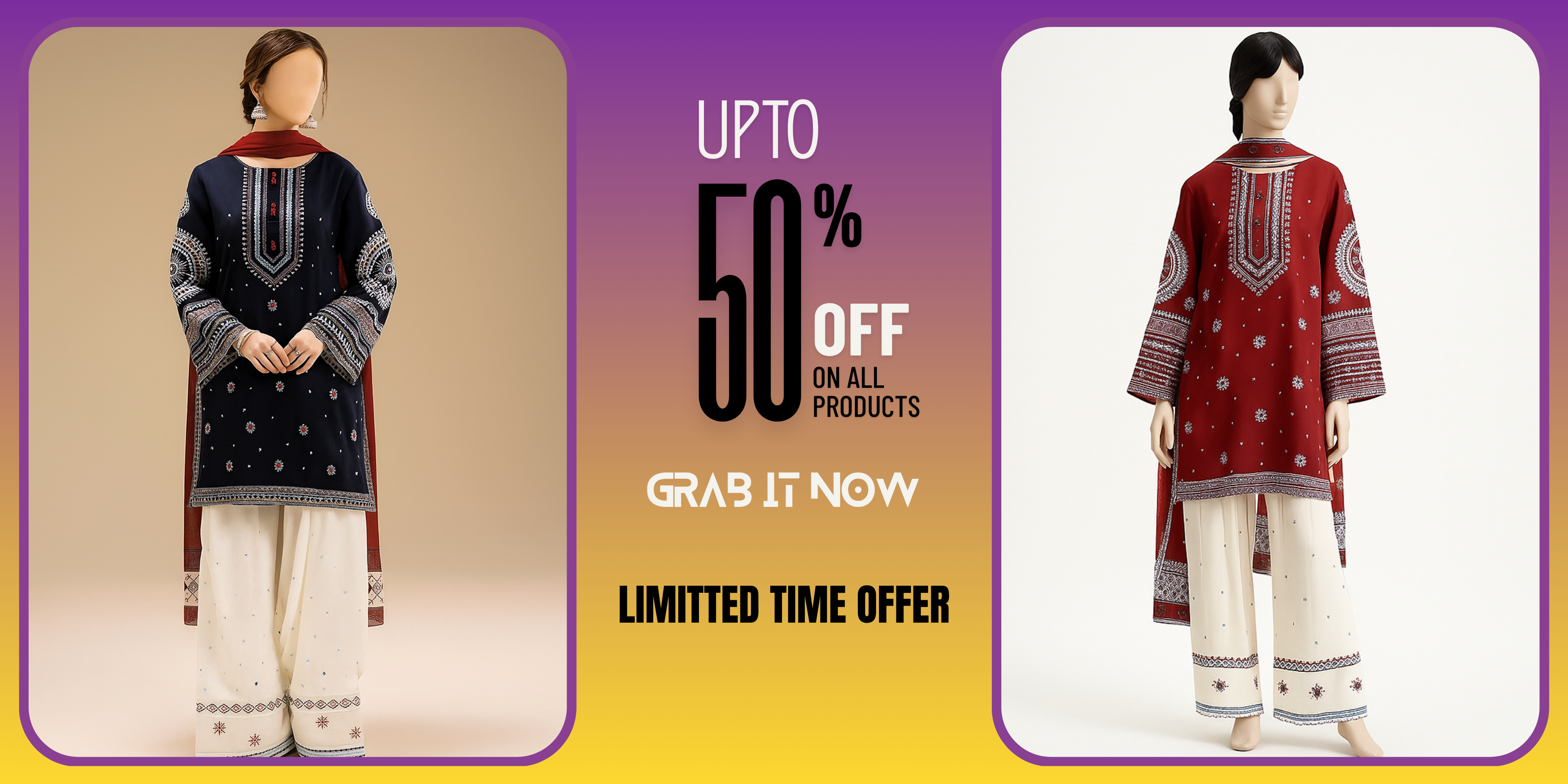 We offer a wide range of women’s clothing including casual wear, formal wear, unstitched fabric, stitched suits, and seasonal collections.